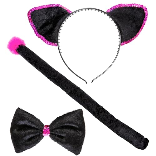 "CAT" dress-up set (örhängen, rosett tie, svans) –