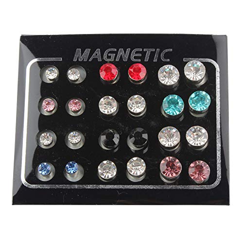 POFET 12 par färger glänsande strass magnetisk klämma icke-piercing örhängen set unisex