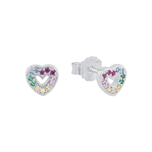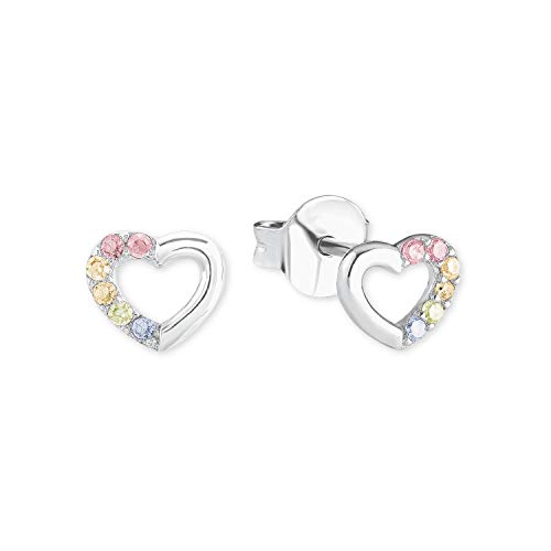 Amor örhängen 925 sterling silver tjej barn örhängen, med cubic zirconia synth, 0,4 cm, silver, hjärta, Kommer i smycken presentförpackning, 2028107