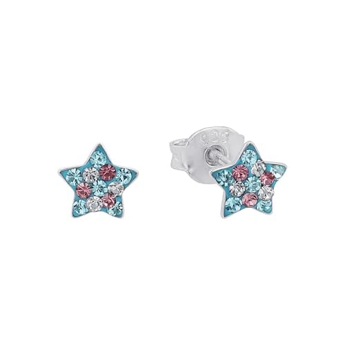 Prinzessin Lillifee Örhängen 925 sterling silver barn örhängen för flickor, med preciosa, 0,6 cm, flerfärgad, stjärna, kommer i smycken presentförpackning, 2013175