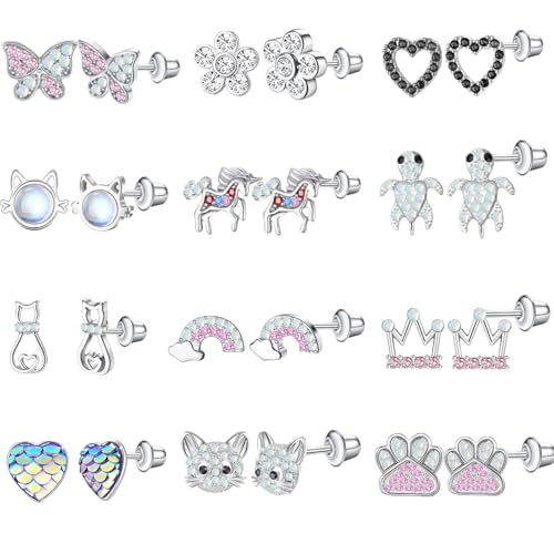 Jagosen 12 Par Sterling Silver Örhängen Set För Barn Initial Skolflickor Kvinnor Allergivänliga CZ Färgglada Katter Örhängen Örhängen Set För Tonårsflickor B, Metall