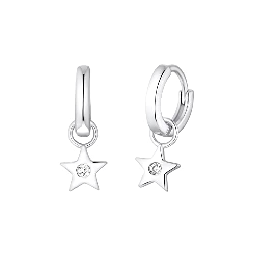Amor örhängen för flickor 925 sterling silver för barn, med kristallglas, 0,6 cm, silver, stjärna, Kommer i smyckespresentask, 2036522