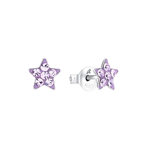 Amor örhängen 925 sterling silver barn örhängen för flickor, med kristallglas, 0,6 cm, silver, stjärna, Kommer i smycken presentförpackning, 2036523