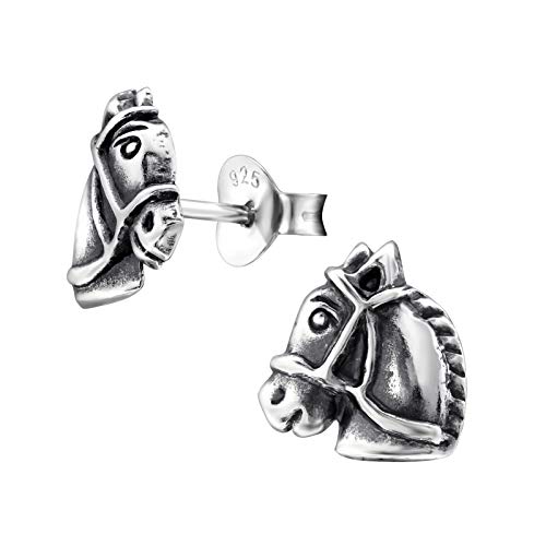 Tiwoca Jewellery flicka örhängen häst, hästhuvud äkta silver 925, örhängen häst för hästar barn, nickelfri, med gratis smyckesfodral och polerduk för smycken, Silver