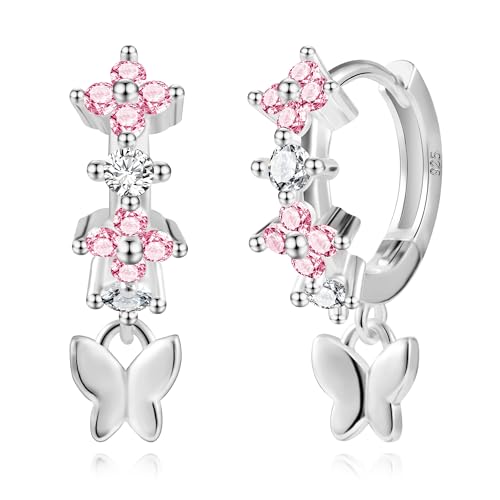 LOLIAS örhängen silver 925 för kvinnor flickor huggie kreoler örhängen med hjärta fjärilar stjärna hängande färgglad zirkonia små träd droppar kreoler barn örhängen silver flicka, Sterling silver