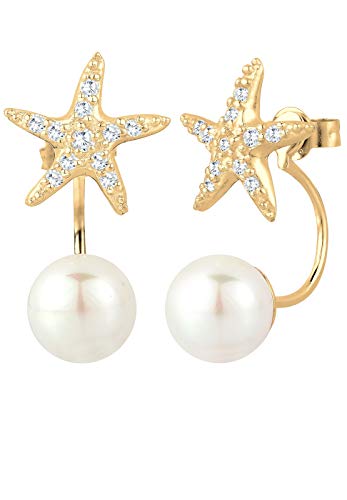 Elli Nautical Happy Sjöstjärna Örhängen 925 Silver Kudde Briljant Slipad Kubisk Zirkonia - Vita och Syntetiska Pärlor 0303223115, Sterlingsilver, Kubisk zirkonia