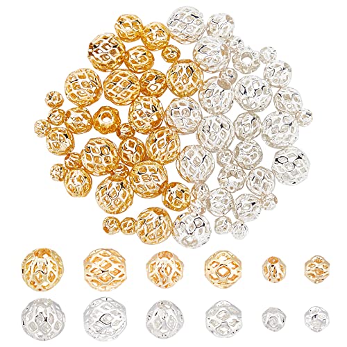 PH PandaHall 3 storlekar äkta 18K guld silverpläterade ihåliga pärlor, 60 st runda filigranpärlor mässing metall distanspärlor för gör-det-själv hantverk armband halsband örhängen smyckestillverkning
