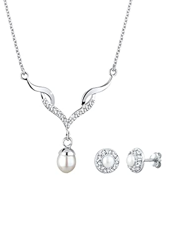 Elli smyckesset damer droppe hänge set örhängen med kristaller och sötvattensodlade pärlor i 925 sterlingsilver, 450, Silver, Pärla