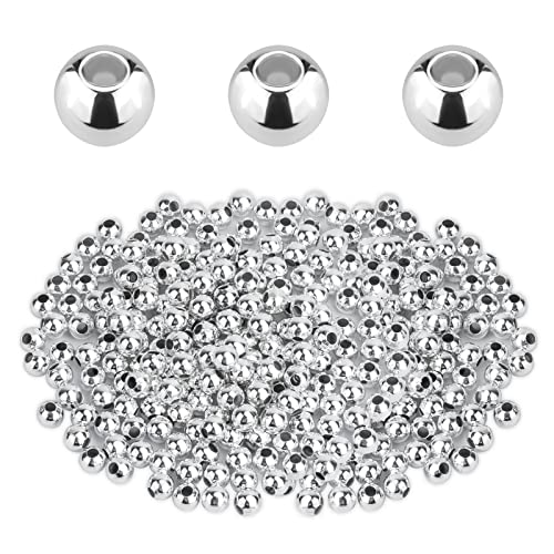 SAVITA 200 st 5mm Runda Distanspärlor för Smyckestillverkning, Metalldistans Pärlor Silver Släta Runda Pärlor för Diy-Tillverkning Armband Halsband Örhängen Hantverk