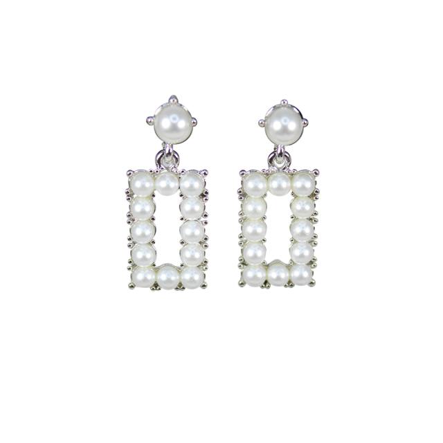 Complement Smår Rektangulära Örhängen Med Vita Pärlor Silver