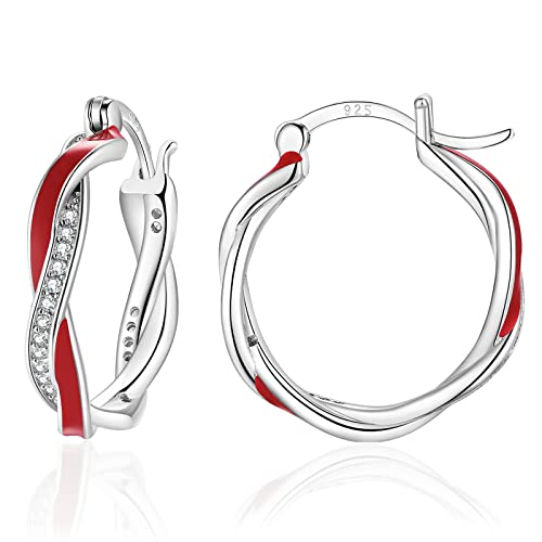 Sfoni Silver ringörhängen för kvinnor - 925 sterling silver vridna ringar örhängen allergivänliga små sovande ringar örhängen lätta kubisk zirkon huggie ring örhängen gåvor, storlekar 15/20 mm