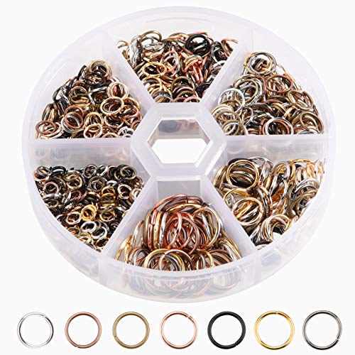 Rybtd cirka 970 st öppna hoppringar i 7 färger delade ringar 4/5/6/7/8/10 mm nära men oslöda bindringar med plastlåda kan användas för smyckestillverkning tillbehör, örhängen, halsband, armband