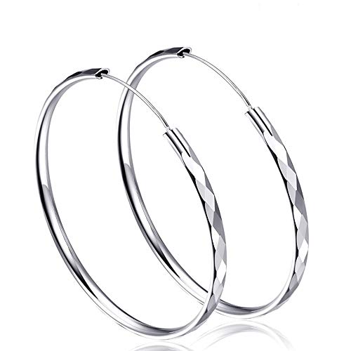 Fu You 925 silverörhängen rund cirkel sovande ring örhängen silver romb stora ringar 50 mm örhängen för kvinnor damer, 50mm, Silver