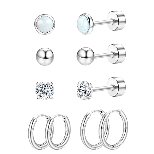 KRFY 5 par titanörhängen för kvinnor män G23 titan knoppörhängen opal kubisk zirkoniaöron piercing allergivänliga titanörhängen dubbar 20 g platt baksida ringar dubbar örhängen för kvinnor flickor