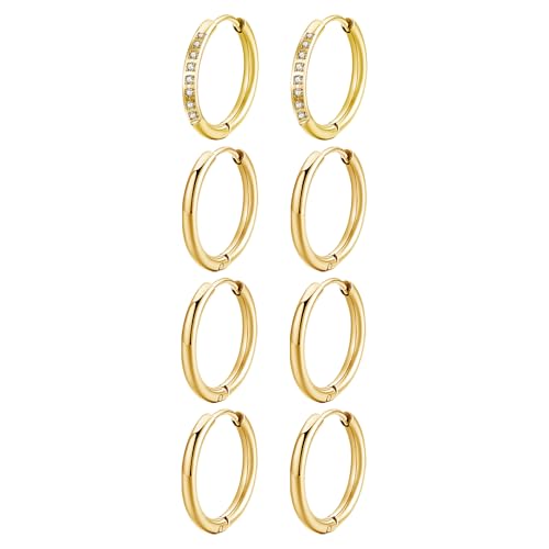 JUZICHEN 3-4 par ringar örhängen guld silver för kvinnor, allergivänliga örhängen litet set rostfritt stål, zirkon stiftörhängen, för flera piercingar kvinnor, 1, Rostfritt stål, Rostfritt stål