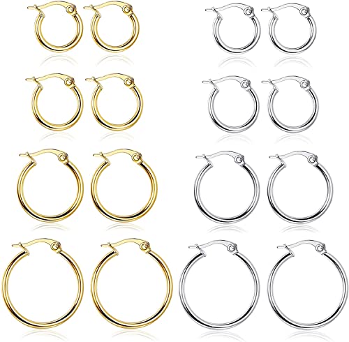 Morfetto Rundade små ringar i rostfritt stål set för kvinnor söta huggie-örhängen nickelfria 10 mm-20 mm, Rostfritt stål