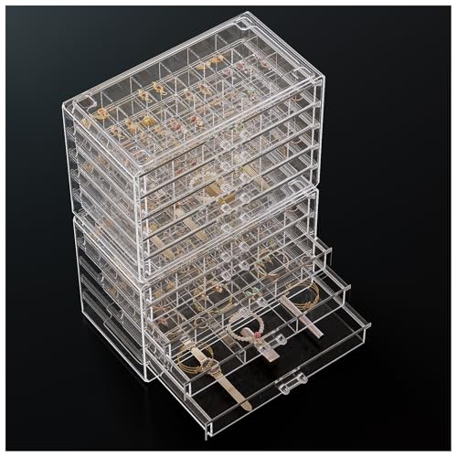 ProCase Transparent smyckesorganisatör akryl stapelbar smyckesorganisatör transparent smyckesförvaring smyckeskrin för örhängen ringar för kvinnor flickor – 10 våningar
