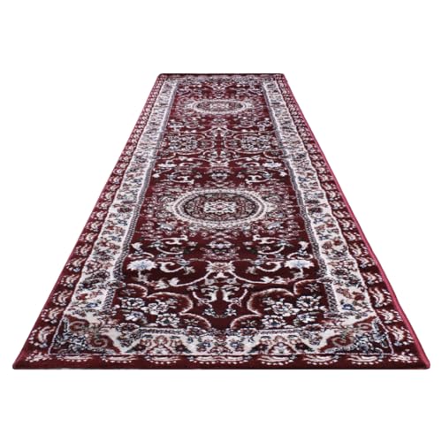 SaRani Gångmatta löpare löpare klassisk orientalisk lång kort lugg för hall, entré, trappa (Bordeaux, 290 x 70 cm)