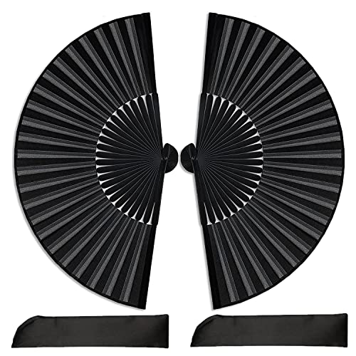 Dimoxii 2-pack Svarta Vikbara Solfjädrar i Bambu och Silkesliknande Tyg, Handhållna Orientalisk Dekorationsfläktar med Förvaringspåsar för Fest, Bröllop, Sommar och Inredning