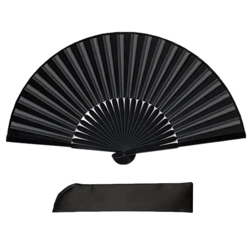 Dimoxii Svarta Vikbara Solfjädrar i Bambu och Silkesliknande Tyg, Handhållna Orientalisk Dekorationsfläktar med Förvaringspåsar för Fest, Bröllop, Sommar och Inredning
