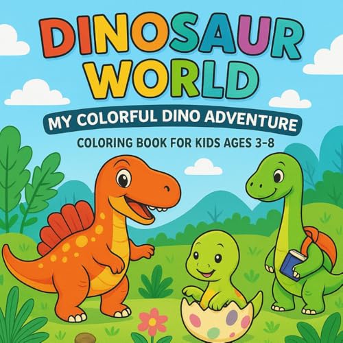 Dinosaur World: My Colorful Dino World: A Fun and Educational Dinosaur Coloring Book for Kids Ages 3–8 | Over 50 Cute Prehistoric Scenes | Perfect for Boys & Girls Who Love Dinosaurs!