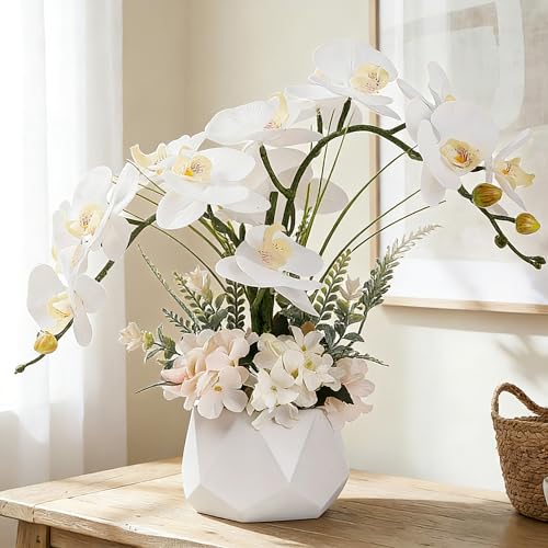 Oairse orkidé konstgjorda blommor 45 cm vita falska orkidé silkesblommor med keramisk kruka fuskorkidéarrangemang för hem kontor rum soffbord bordsuppsats, modern dekoration