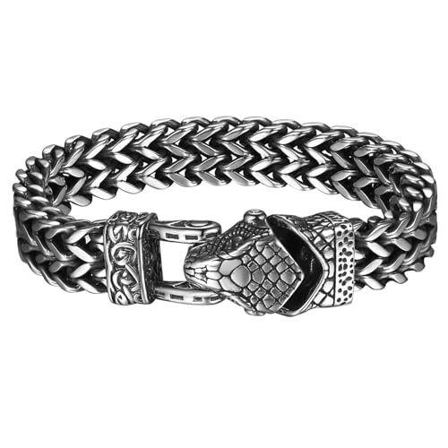 Flongo viking biker armband för män: rostfritt stål örn varg bil motorcyklar orm djur gotisk punk stort armband norsk amulett lyckobringare