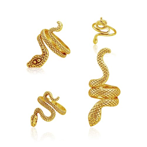 DAZZLUXE 4-delad ring, ormring, gyllene medusa-smyckesring, öppen vintage ormring, guld