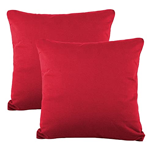 Twinzen® Örngott 40x40 cm (Set om 2) - Jersey 100% bomull 150 GSM - Vinröd - Örngott 40x40 cm - Kuddfodral med dragkedja - Oeko-Tex certifierad