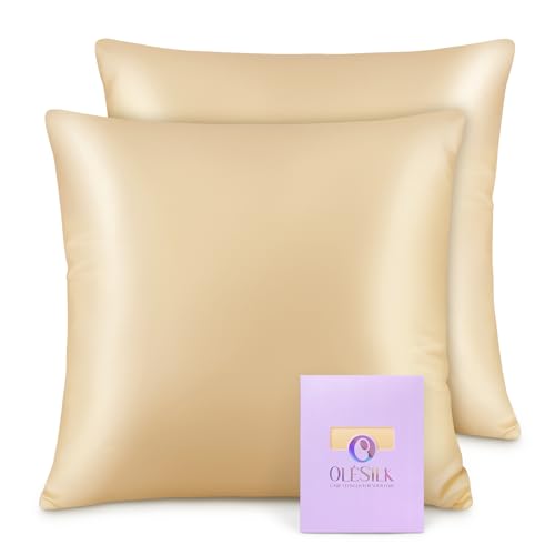 OLESILK 100% silke örngott för hår och hud, båda sidor 16 Momme Mullbärssiden, med dold dragkedja och presentförpackning, 2 st (40x40 cm, Guldfärgad)