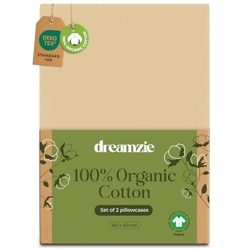 Dreamzie - 100% Ekologisk Bomull - Örngott 40x40 cm Ekologisk Bomull - Set om 2 - Beige - Örngott med Dragkedja - Oeko-Tex
