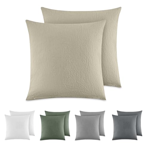Dreamzie Örngott 40x40 Bomull (Set om 2) Örngott 100% tvättad bomullslinnelook, Kuddfodral med dragkedja, Beige, Oeko Tex Certified