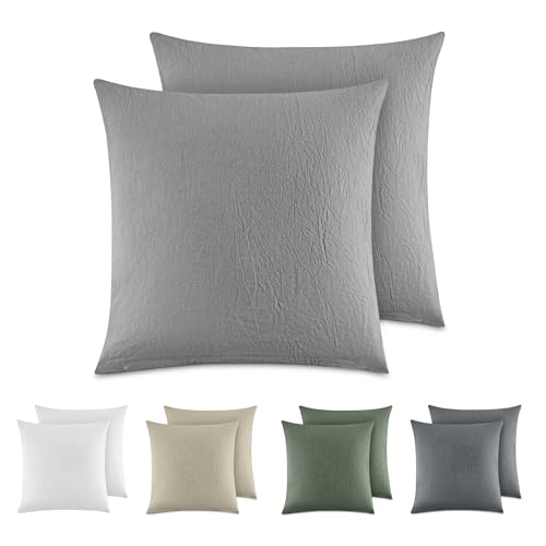 Dreamzie Örngott 40x40 Bomull (Set med 2) Örngott 100% tvättad bomullslinnelook, kuddfodral med dragkedja, mörkgrå, Oeko Tex Certified