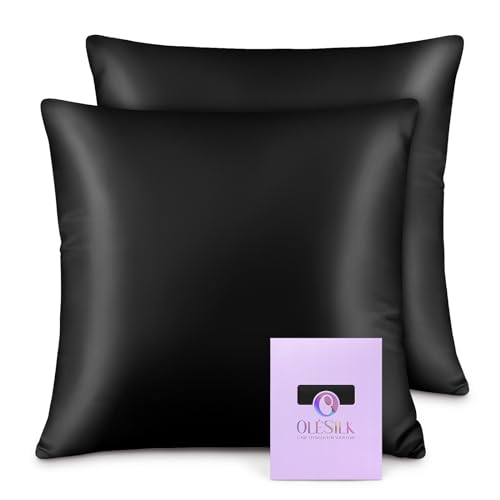 OLESILK 100% silke örngott för hår och hud, båda sidor 16 Momme Mullbärssiden, med dold dragkedja och presentförpackning, 2 st (40x40 cm, Svart)