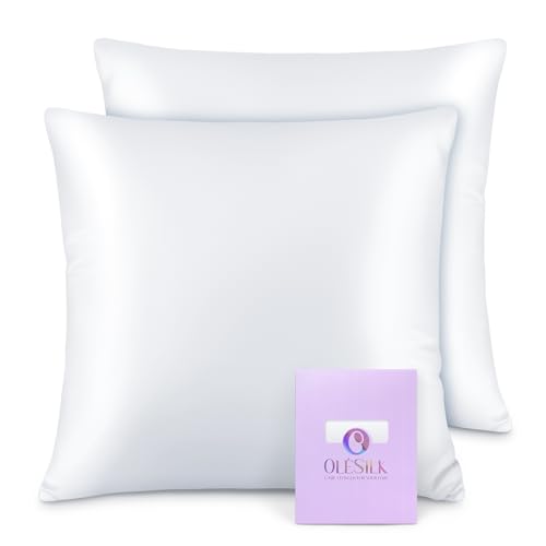OLESILK 100% silke örngott för hår och hud, båda sidor 16 Momme Mullbärssiden, med dold dragkedja och presentförpackning, 2 st (40x40 cm, Vit)