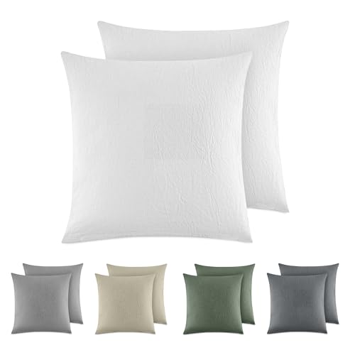 Dreamzie Örngott 40x40 Bomull (Set med 2) Örngott 100% tvättad bomullslinnelook, kuddfodral med dragkedja, vit, Oeko Tex Certified