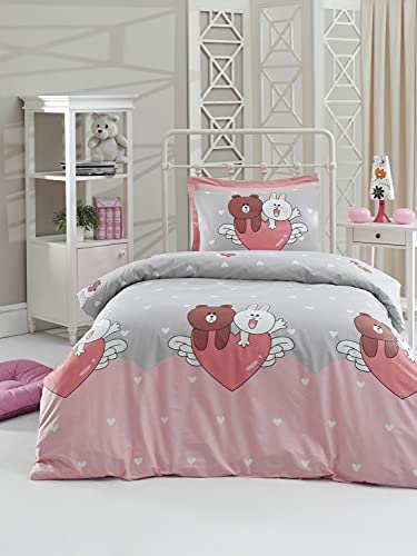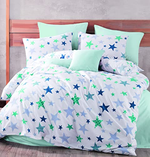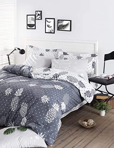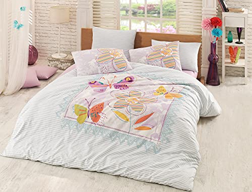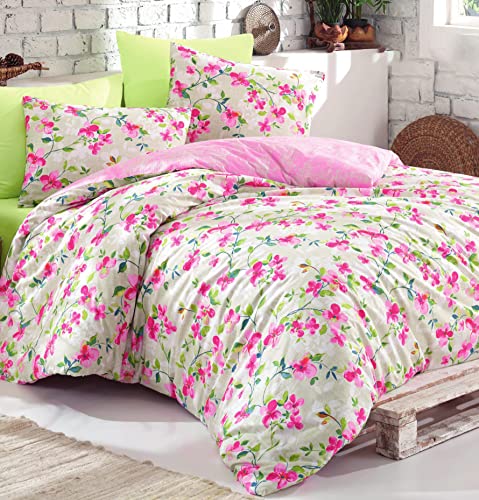 Questo Casa 100% Bomull Ranforce Enkelt Täckeuppsättning, Duntäcke: 160x220 cm, Platt Ark: 160x240 cm, Örngott: 50x70 cm (1 del)