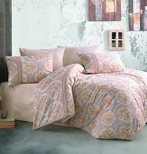Questo Casa 100% Bomull Ranforce Dubbelt Täckeuppsättning, Duntäcke: 200x220 cm, Platt Ark: 240x260 cm, Örngott: 50x70 cm (2 st)
