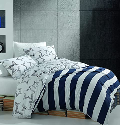 Questo Casa 100% Bomull Ranforce Enkelt Täckeuppsättning, Duntäcke: 160x220 cm, Platt Ark: 160x240 cm, Örngott: 50x70 cm (1 del)