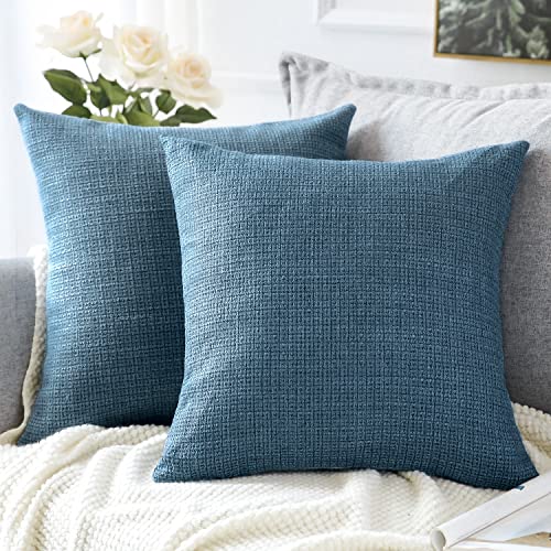 Artscope Kuddfodral, set med 2 örngott i linne, dekorativa, fyrkantiga kuddfodral för heminredning, soffa, sovrum, bil, 40 x 60 cm (blå, 16 x 24 tum)
