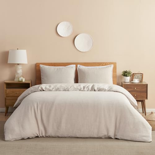 DAPU 100% linne påslakanset – rent naturligt franskt linlinne med 8 hörnband och blixtlåsstängning, mjuk, andningsbar, hållbar för sovande, 1 påslakan 2 örngott (naturligt linne, drottning/full)