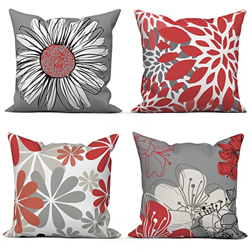 ASDCXZ rött örngott 50 x 50 cm, set om 4, norra Europa moderna blommor röd grå soffa dekorativa kuddar örngott tvättbar polyester linne textil stoppning örngott