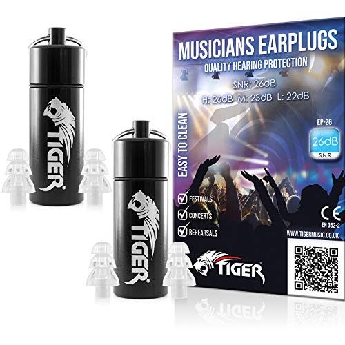 Tiger musiker filter öronproppar hörselskydd brusreducerande öronpluggar festivaler, konserter, musik, klubbar öronpluggar med bärfodral Standard SNR 26dB - Pack of 2 Klar