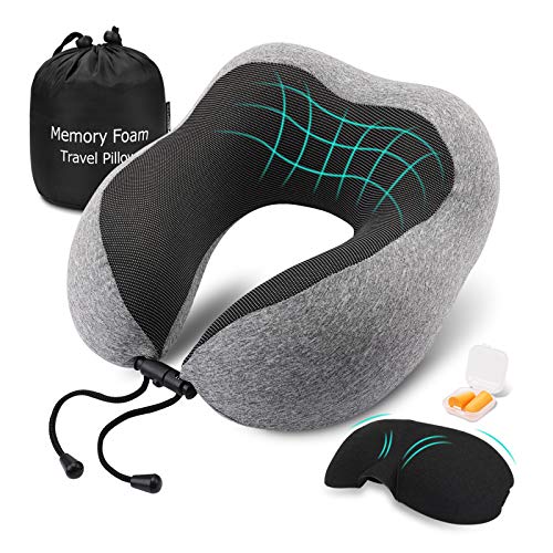 Keenstone Resekudde minnesskum, resekudde med ögonmask, öronpluggar, bärväska, mjuk bärbar bekväm flygkudde, resekuddar för långvarig flygning, resekudde