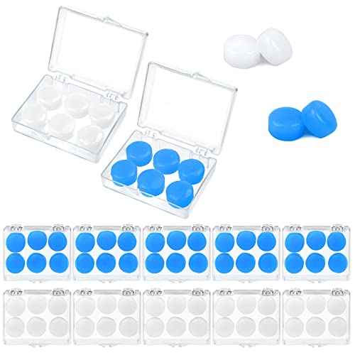 12 par öronproppar i silikon för sovande brusreducering, återanvändbara, gjutbara vaxöronproppar för simning, arbete, flygplan, SNR27dB (blå, orange)
