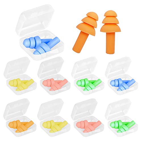 Öronproppar för sömnbrusreducering, 10 par återanvändbara öronproppar för sömn, konsert, snarkning, resor, arbete, 10 färger, 33 dB SNR