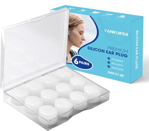 Öronproppar i silikon för sömn, 6 par 27 dB återanvändbara vattentäta brusreducerande premium gjutbara öronproppar för att sova, resa, studera brusreducering vit