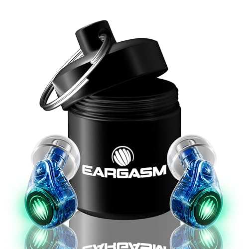 Eargasm High Fidelity öronproppar med blå filter – återanvändbara brusreducerande hörselskydd öronproppar med bärväska för barendrar, konserter, festivaler, raves, musiker, levande musik, sport