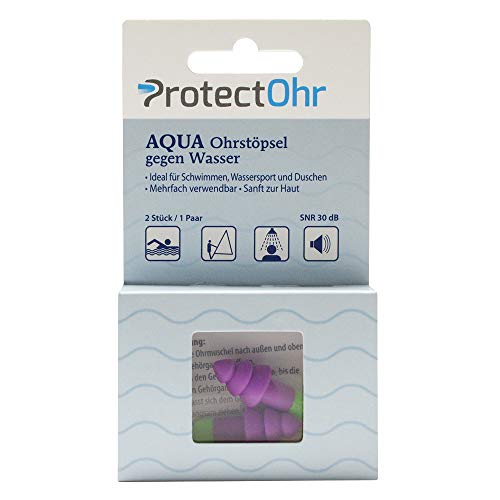 ProtectOhr - Aqua-öronproppar, förpackning med 2 öronproppar, återanvändbara silikonproppar, perfekt för simning, dusch, vattensport, surfing, hörselskydd mot buller, extra mjuk, lila