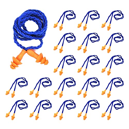 TSHAOUN 20 par öronproppar med sladdar, återanvändbara öronproppar i silikon som sover brusreducering, för brusreducering och hörselskydd (orange)